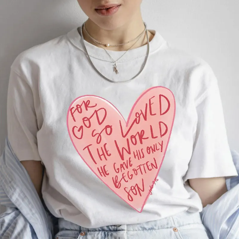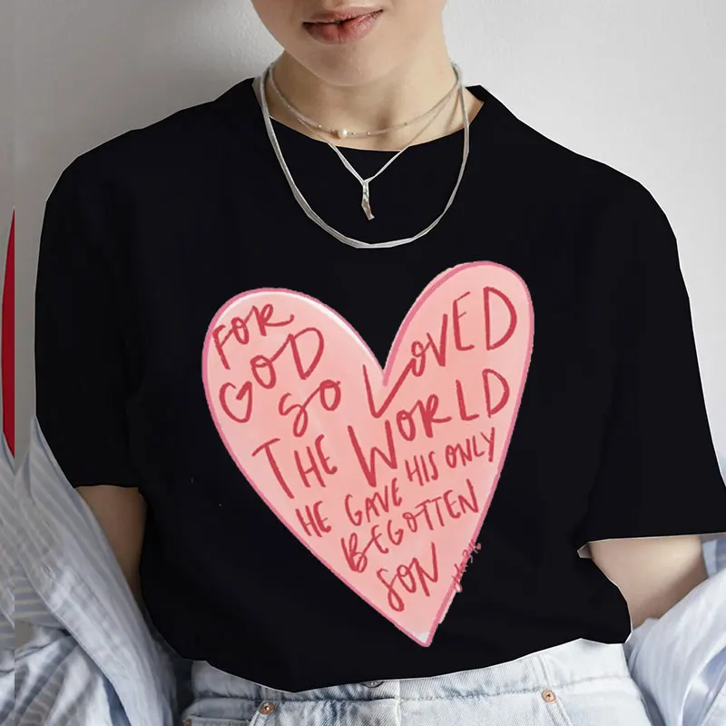 Bible Verse Shirts for Women Clothing 2024 Christian for God so Loved the World Women'S T-Shirts Short Sleeve Tshirts Jesus Tops